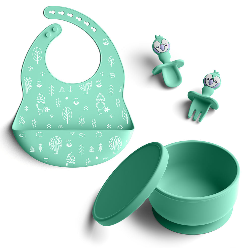 - أبطال التغذية الذاتية: شجعوا التغذية الذاتية مع الملعقة والشوكة السيليكونية الناعمة التي تكون لطيفة على اللثة وسهلة الإمساك للأيدي الصغيرة.