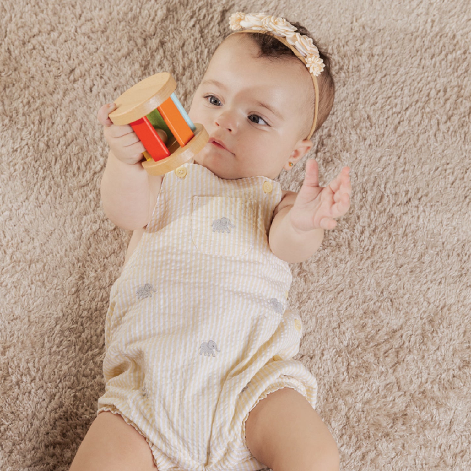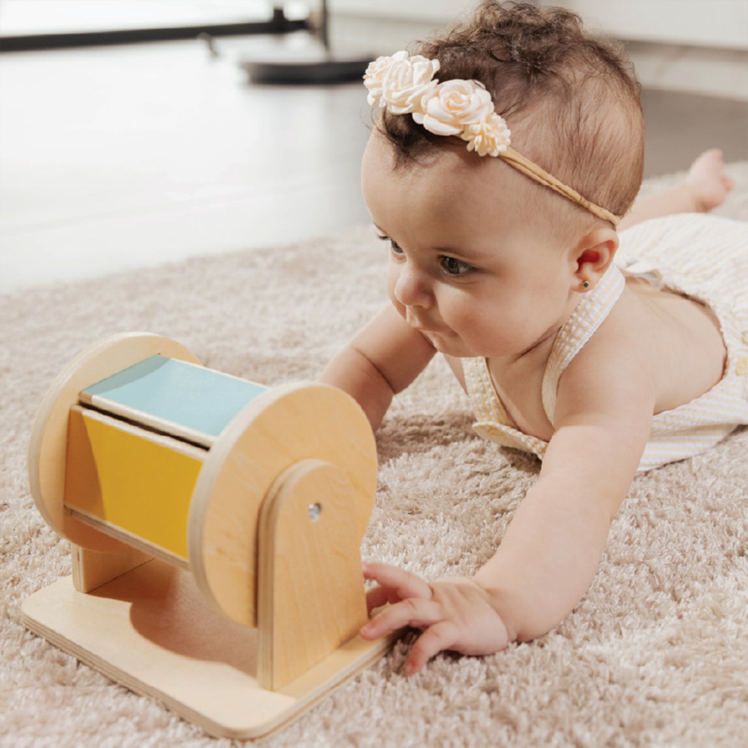 يساعد الطبل الدوار الذي يصدر أصواتًا مرحة عند تحريكه على استكشاف الألوان والأصوات، مما يعزز تطوير التنسيق بين اليد والعين وقوة العضلات.
