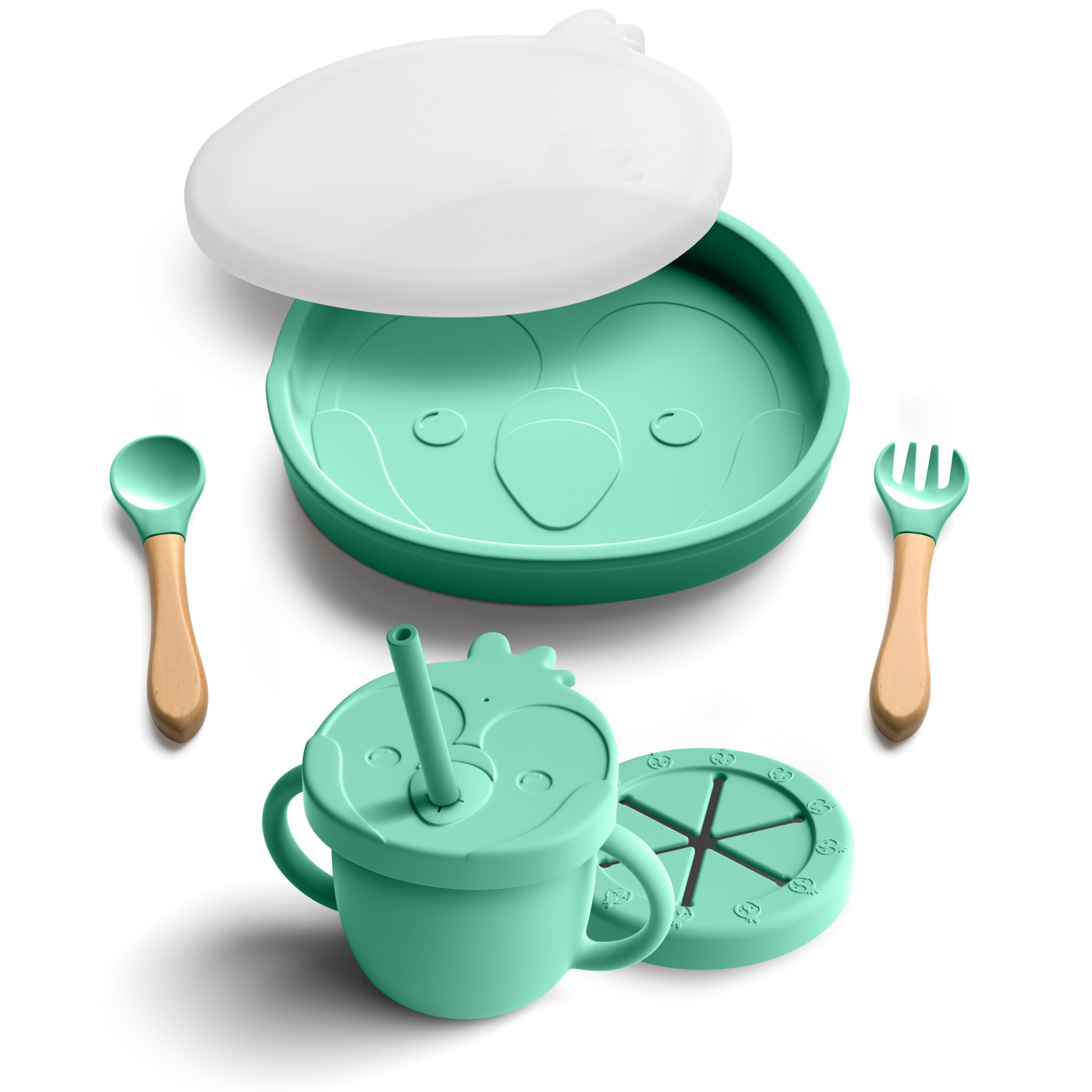 - تصميم مانع للتسرب: الطبق العميق مع غطاء محكم والكوب التدريبي المانع للتسرب يساعدان على تقليل الفوضى ويحافظان على نظافة وجبات الطعام ومتعتها.